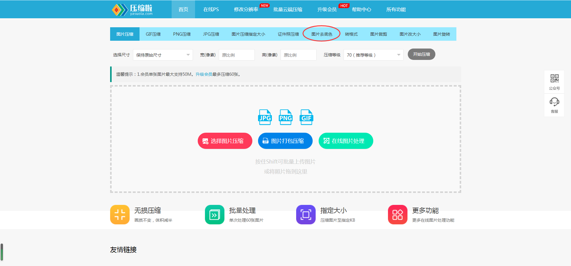 1、打开压缩啦网站,点击导航栏图片去底色。