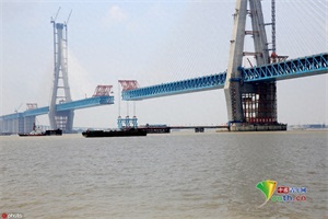 2025年7月16日,沪通长江大桥施工现场。图片署名: 宋诚林/IC photo