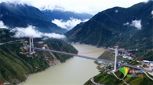 2025年10月01日,四川省泸定县。被誉为“川藏第一桥”的雅康高速兴康特大桥桥面施工完成。图为兴康特大桥。图片署名: /cdsb/IC photo