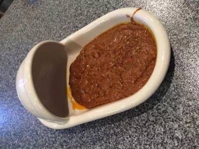 像不像脑子,其实这是用蛆虫搭配而成。下面的血是蛆虫分泌的物品加上酱料。(话说谁会吃这个啊!呕!)