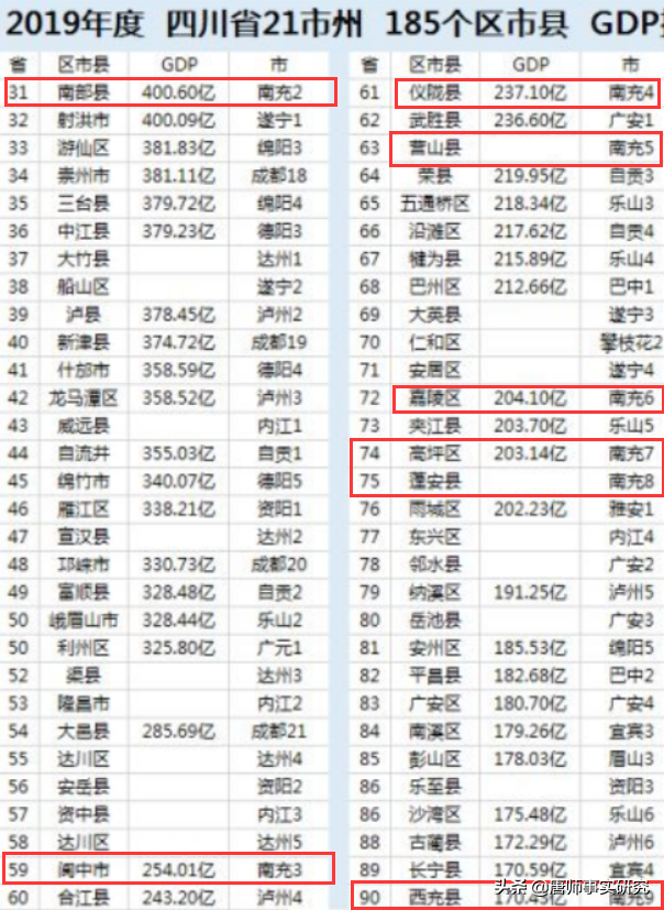 西充县的GDP在全省和全市位置。