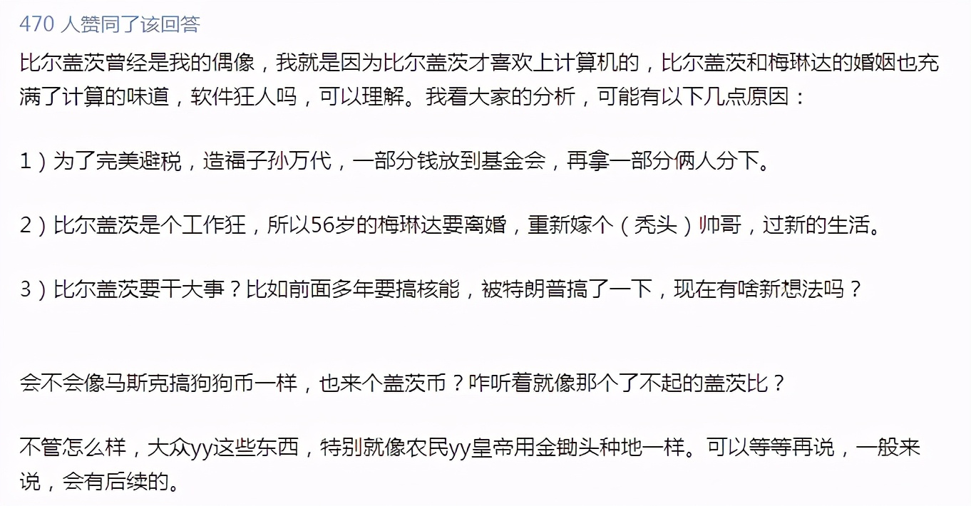 网友们纷纷表示一觉醒来比尔盖茨竟然离婚了,由此可见,这一对夫妻的离婚有多让人不可思议。