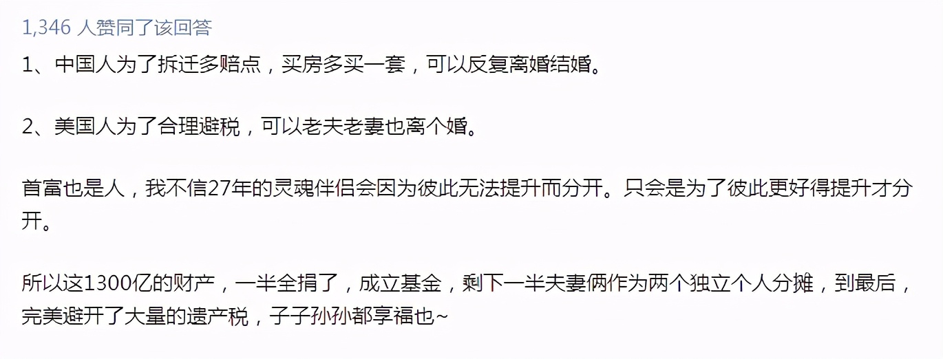 不禁让人感叹一句:大佬果然是大佬,离婚理由都这么励志,这可能就是我们和富豪之间的差距之一。