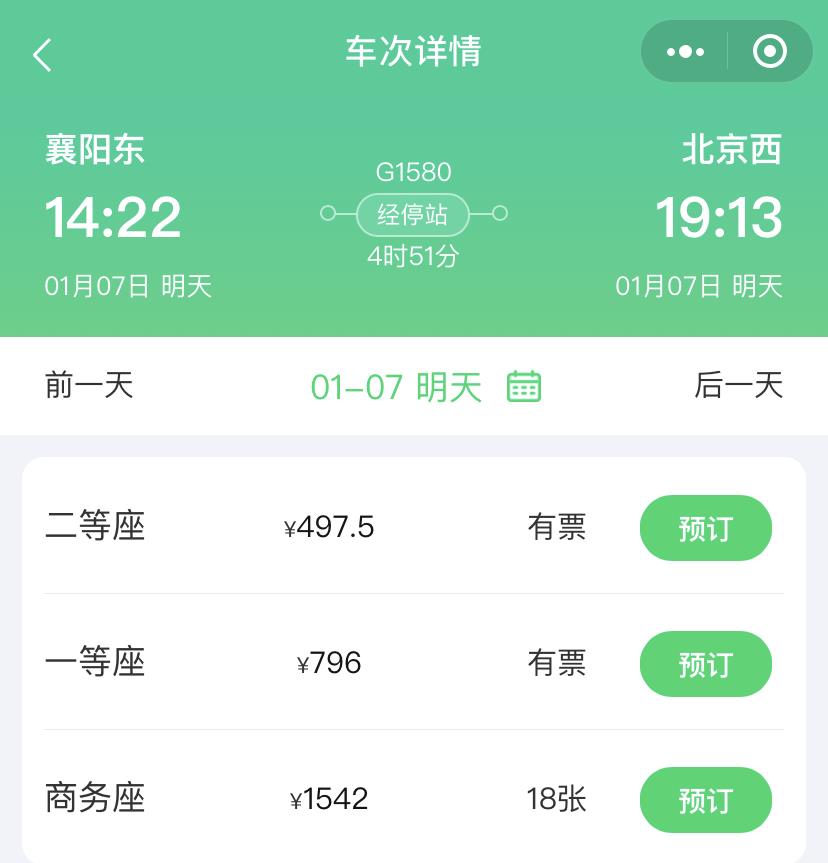 1月6日起,从襄阳坐高铁到北京,全程最快只需4小时51分钟。
