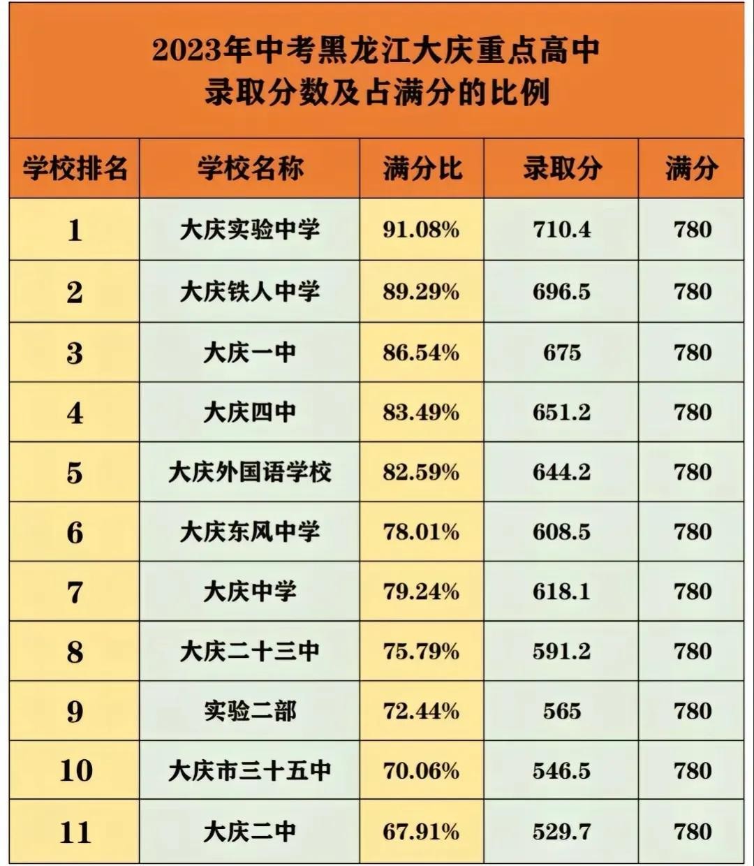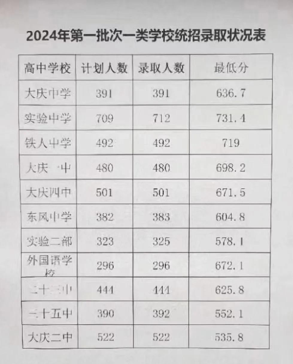 2024年的中高考都已经出成绩了。多年来大庆市一批次高中排名基本已经固定,实验中学、铁人中学和大庆一中一直霸榜前三,具体排名见下表: