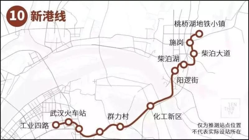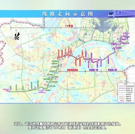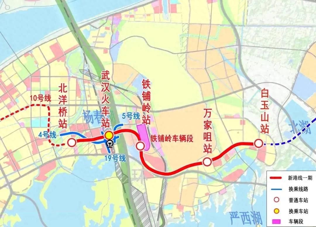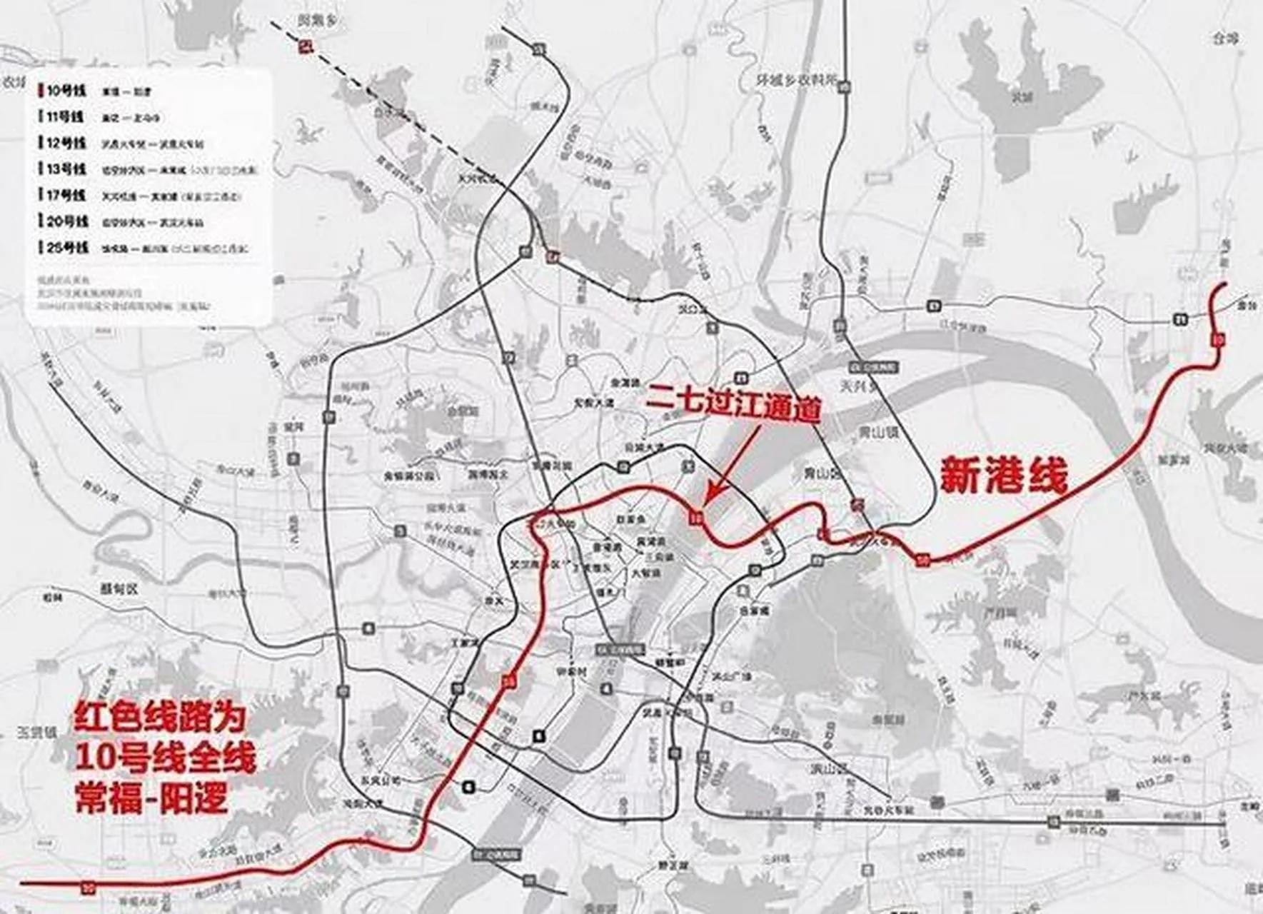2.武汉地铁新港线二期由白玉山站至桃桥湖站,跨越长江,到达阳逻开发区。