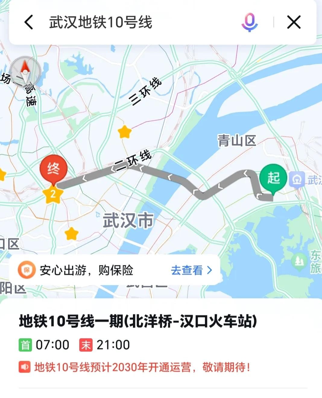 武汉地铁10号线“三步走”,预计通车时间为2030年以后。
