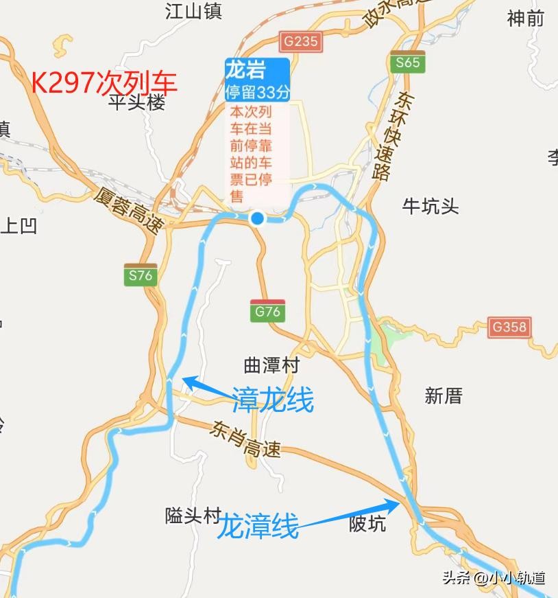 K297次列车由广州东至厦门北,绕行龙川、龙岩