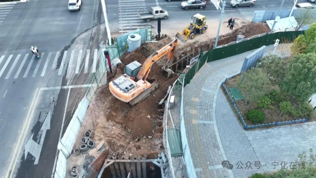 走进项目施工现场,只见大型挖掘机伸展着机械臂,在地面上挖掘沟渠,为铺设新的污水管道开辟通道。