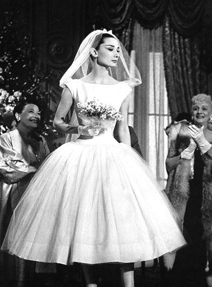 7、赫本不管是年轻的时候,还是年老的时候,都是那么迷人。赫本身穿婚纱,所有人都双眼发光的看着闪耀的赫本,她真的太迷人了。
