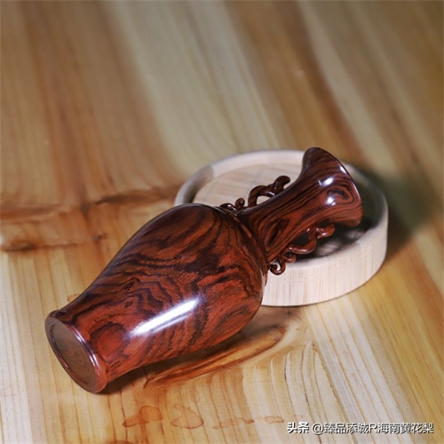 所以在挑选海南黄花梨的时候还是要看品质,多看高品质的紫油梨是怎么样的再决定,不要盲目追求颜色紫,物极必反,太紫就是黑。很多海黄资深玩家,跳出紫油梨的圈子,发现其实纹理生动、材质湿润细腻的糠梨,及五彩料也别有一番风味。