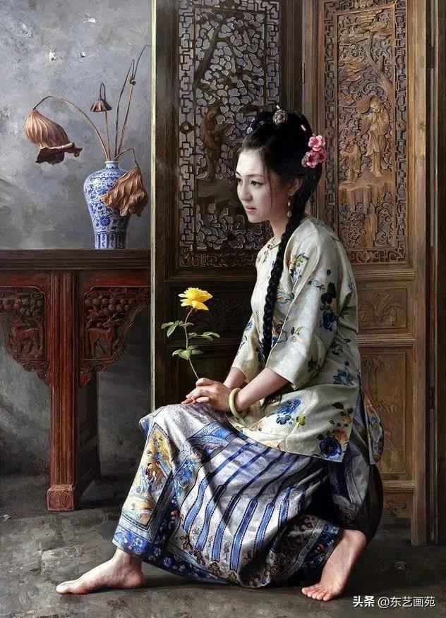 画家王明月,1962年出生于北京,1991年毕业于中央美术学院油画系研修班。王明月在绘画取材上,都是古韵风华美女。用最精密的手法刻画传统人物的细节,具有中国传统审美符号画作里。展现了中国妇女那经历年久程序之美和东方思想的神韵与风采。