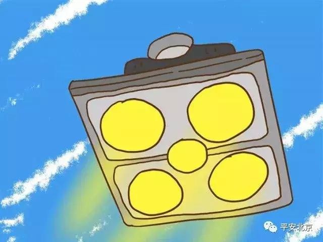 浴霸开启时四个取暖灯泡和照明的灯泡同时使用,这样不但费电而且还不安全,四个取暖灯泡的功率最高可达1100W,长时间使用,可能会容易造成一些老宅的线路跳闸。