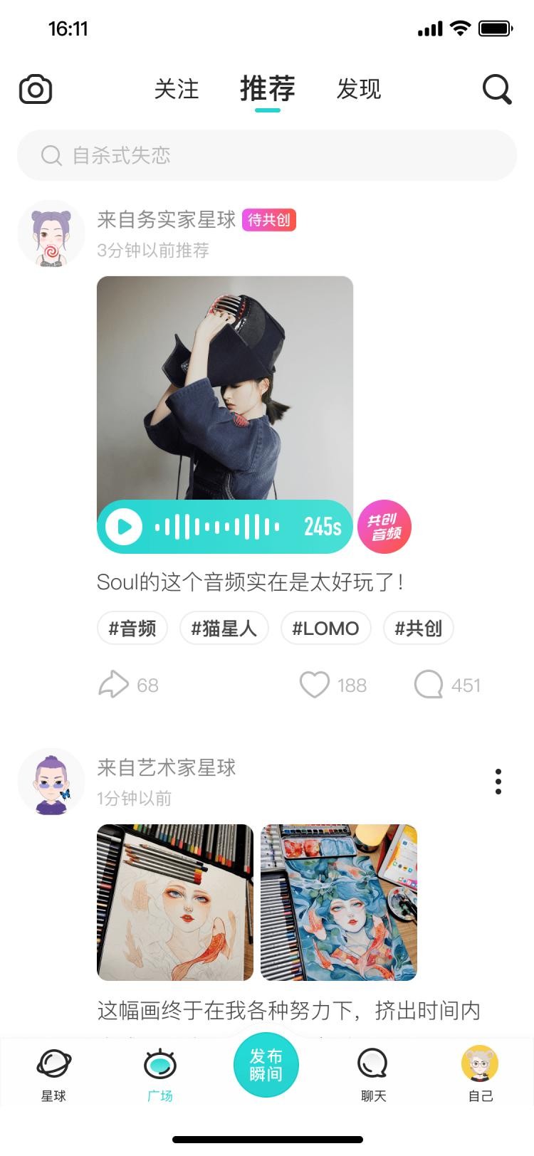 我眼里的Soul挺特别的,跟很多传统的社交软件不一样,对于外貌这一点,Soul没那么看重,更看重的是兴趣、性格。