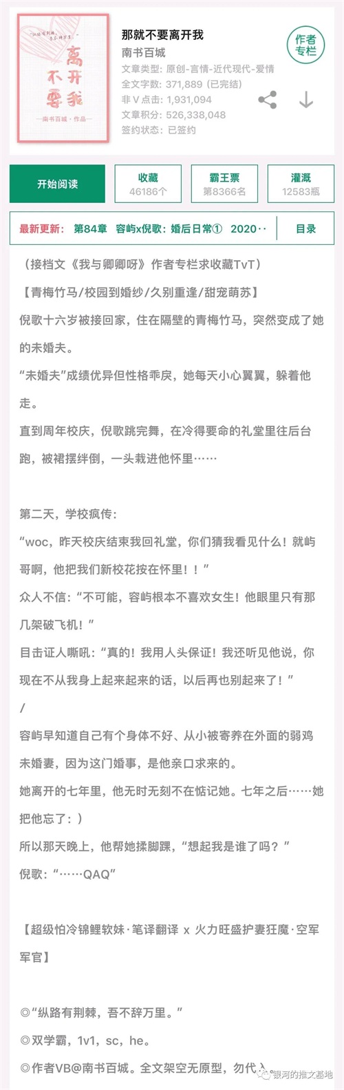推荐一篇bg文《那就不要离开我》,作者是南书百城,晋江