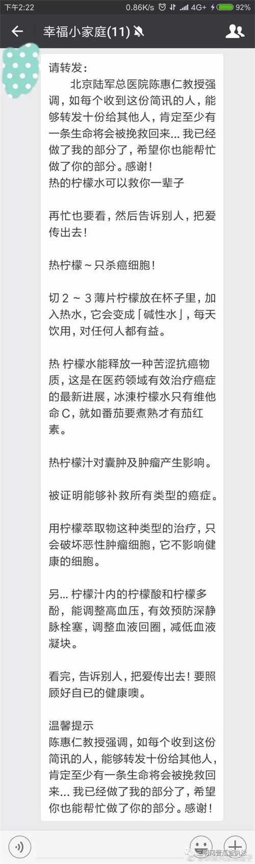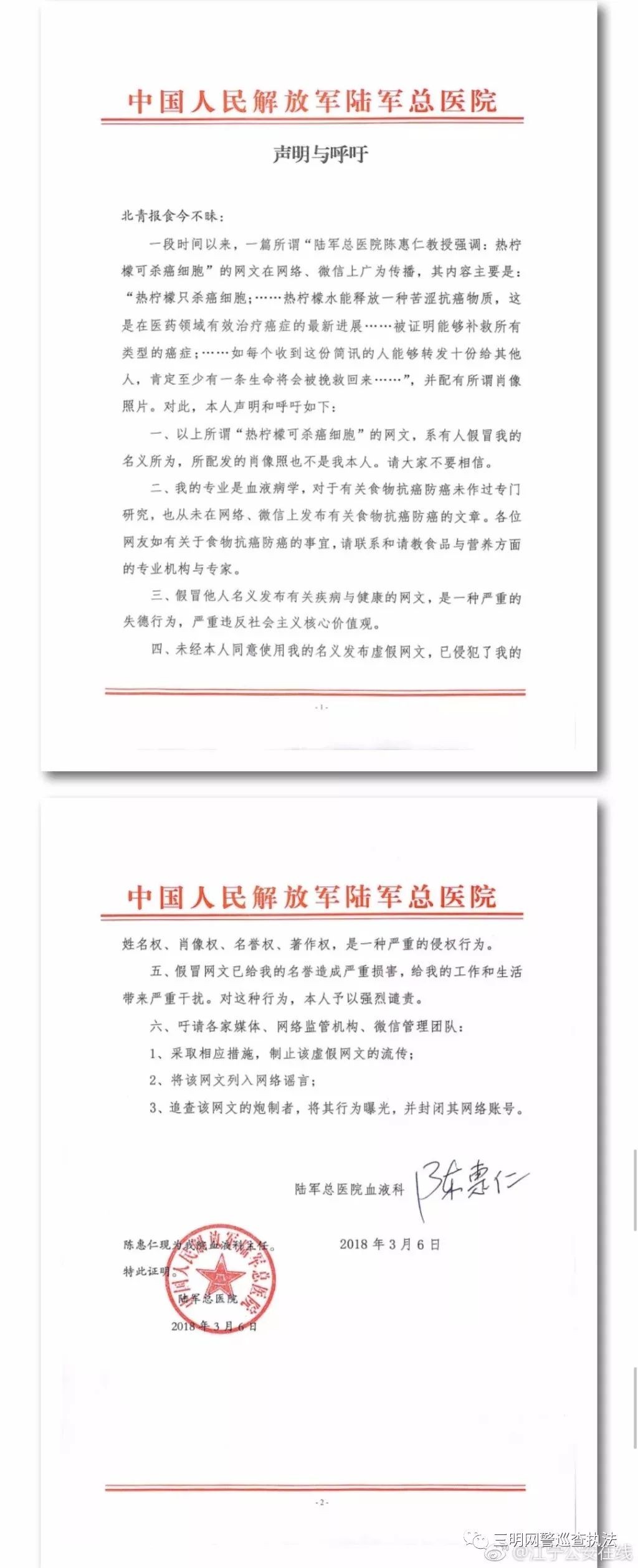 网传“热柠檬只杀癌细胞,声称出自专家之言”。北京陆军总医院陈惠仁教授真身辟谣。大家转起,谨防受骗!