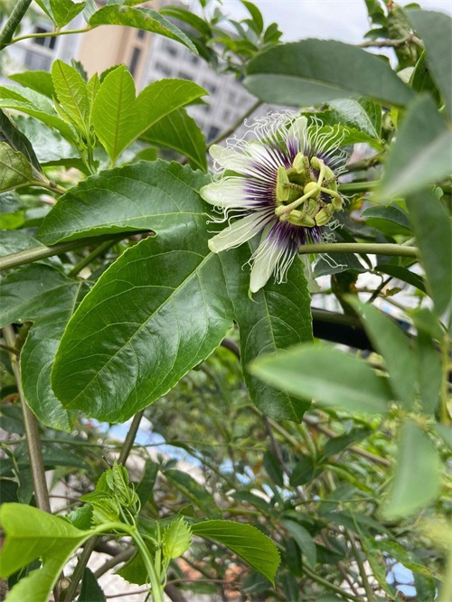 第三,观赏价值。我国栽培西番莲的历史悠久,在唐代、清代,西番莲已作为观赏植物栽培,称为“玉蕊花”;它的花形奇异,色彩艳丽,花期较长,果实累累,是花果俱佳的观赏植物,适宜攀援在棚架、栏杆上或缠绕在树干上栽培应用,在我国南方地区西番莲可植于公园、庭院、绿地等处观赏应用。