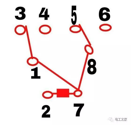 5.380伏延时继电器一般会有8个接触点,两个接触点是通电延时继电器的电压,也就是说是电源,另外还有6个接触点分为了两组跳转,如下图: