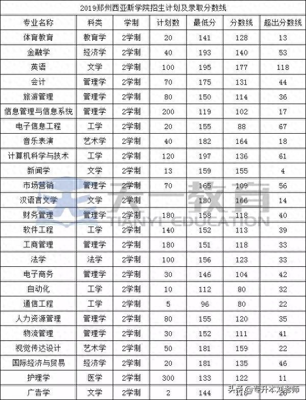 2017-2019年郑州西亚斯学院专升本录取分数线给大家整理如下: