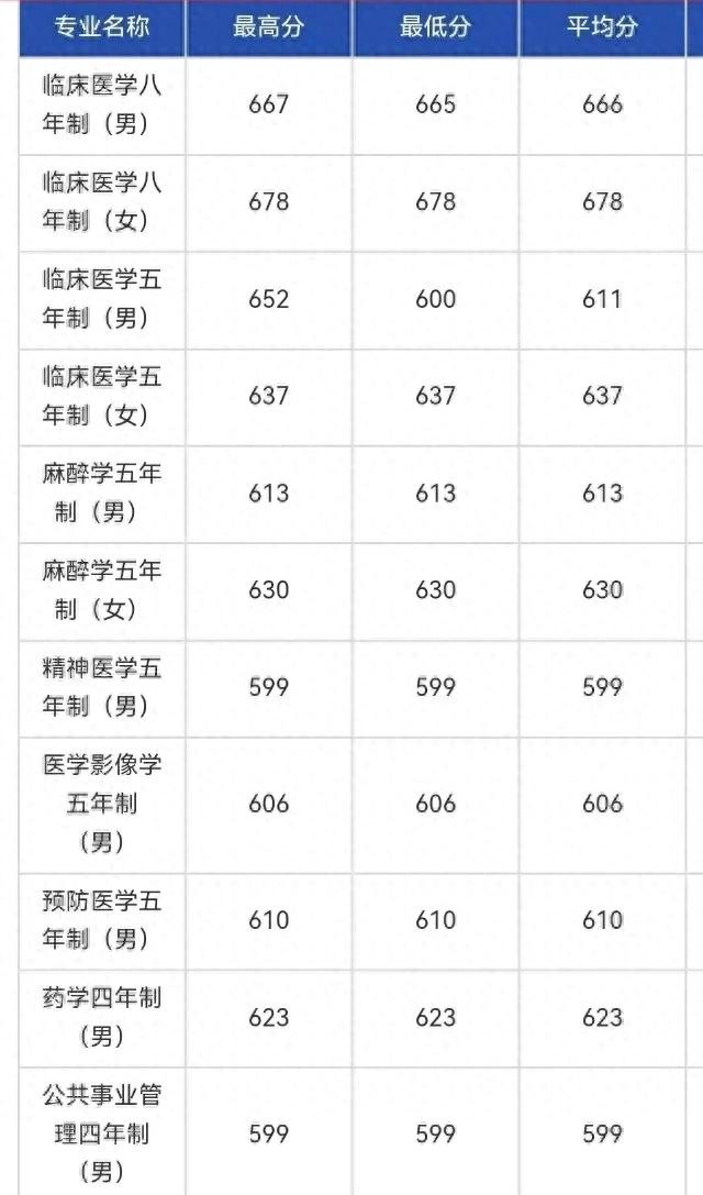 中国人民解放军海军军医大学位于上海市,也称为第二军医大学,是我国“211工程”建设高校。2024年其专业提前批在河南录取分数线统计如下。