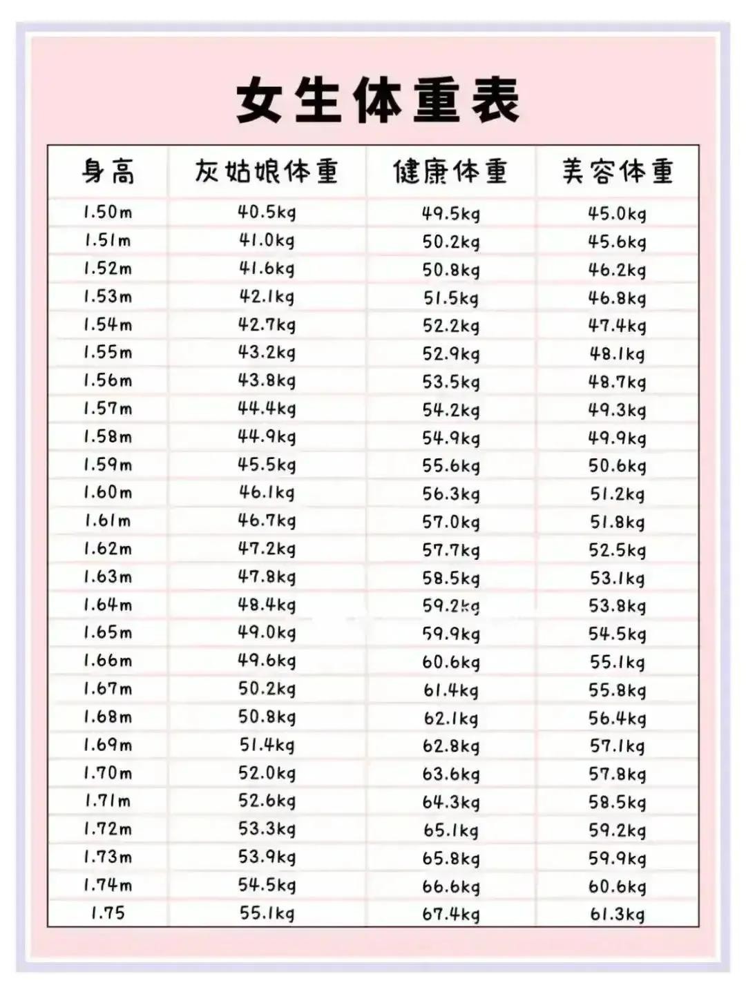凡是女生,都希望自己变瘦,变美,尤其注重身高体重的比例,太瘦也不行,太高还不行,那么怎样的身高体重比例才是女生完美的比例呢?大家可以查看一下下面的体重表,找找自己的位置。