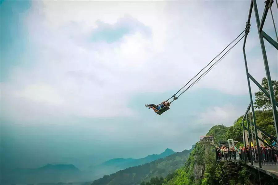 悬崖秋千矗立于山顶之上,临界于悬崖之边的空中秋千,从平台往外飞出,整个身体都脱离依靠,让你在300米高空中体验“命悬一线”,感受打击心灵深处的刺激。