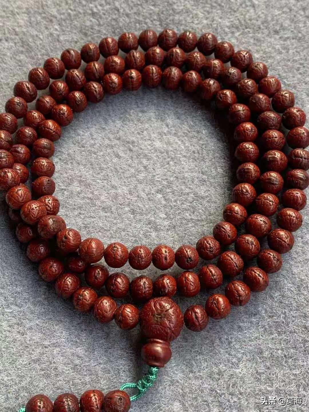 凤眼顽主都知道,小凤眼菩提念珠108颗,一般都是选用小尺寸的凤眼。10mm以下的小尺寸是越小越稀有,价格也会成几何倍数上升!8mm品相中上等的新串价格都可以卖到十来万了。更有甚者,完美包浆的老串价格翻个几倍也很正常。影帝陈坤的尼泊尔凤眼菩提7mm-8mm老串念珠,品相顶级完美,还有德高望重的喇嘛加持过,而且还配有老松石,甚至每颗凤眼也都有宝石镶嵌。其文化价值和市场价值加起来,恐怕要不低于五十万了。