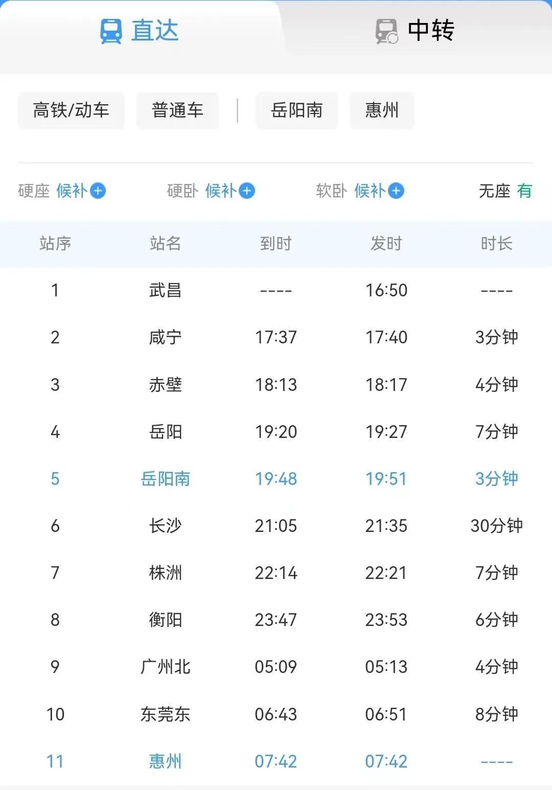 询问岳阳南站最新列车时刻表