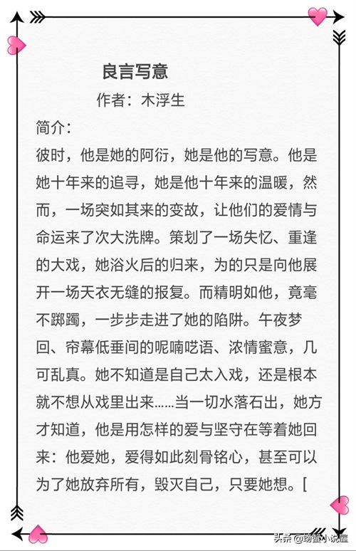 强势来袭!!都市深情经典文,木浮生的《良言写意》熬夜追文