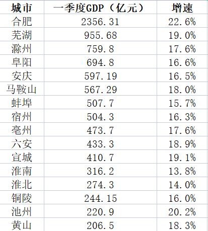 安徽16市一季度GDP出炉,看看你的家乡是多少