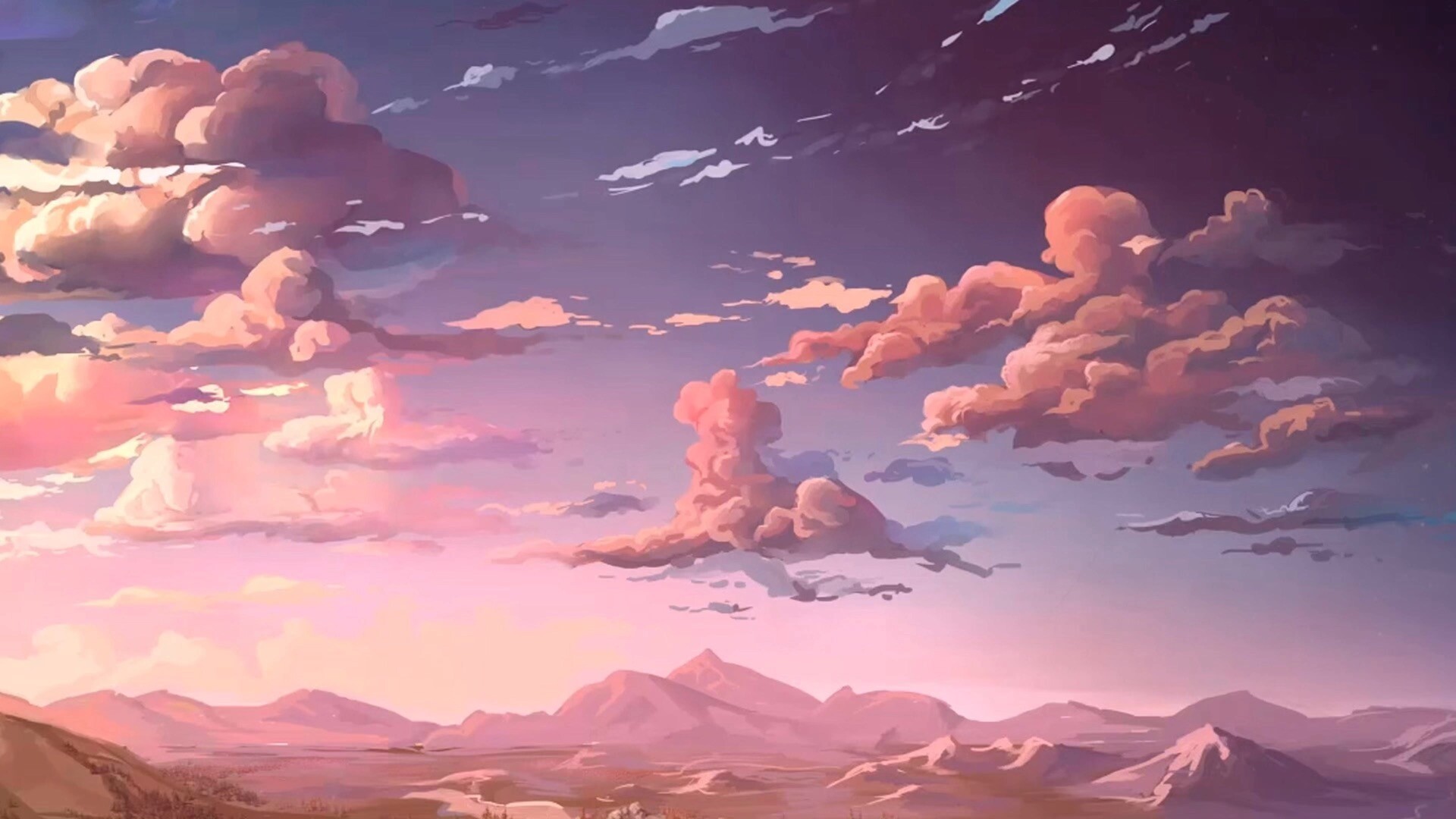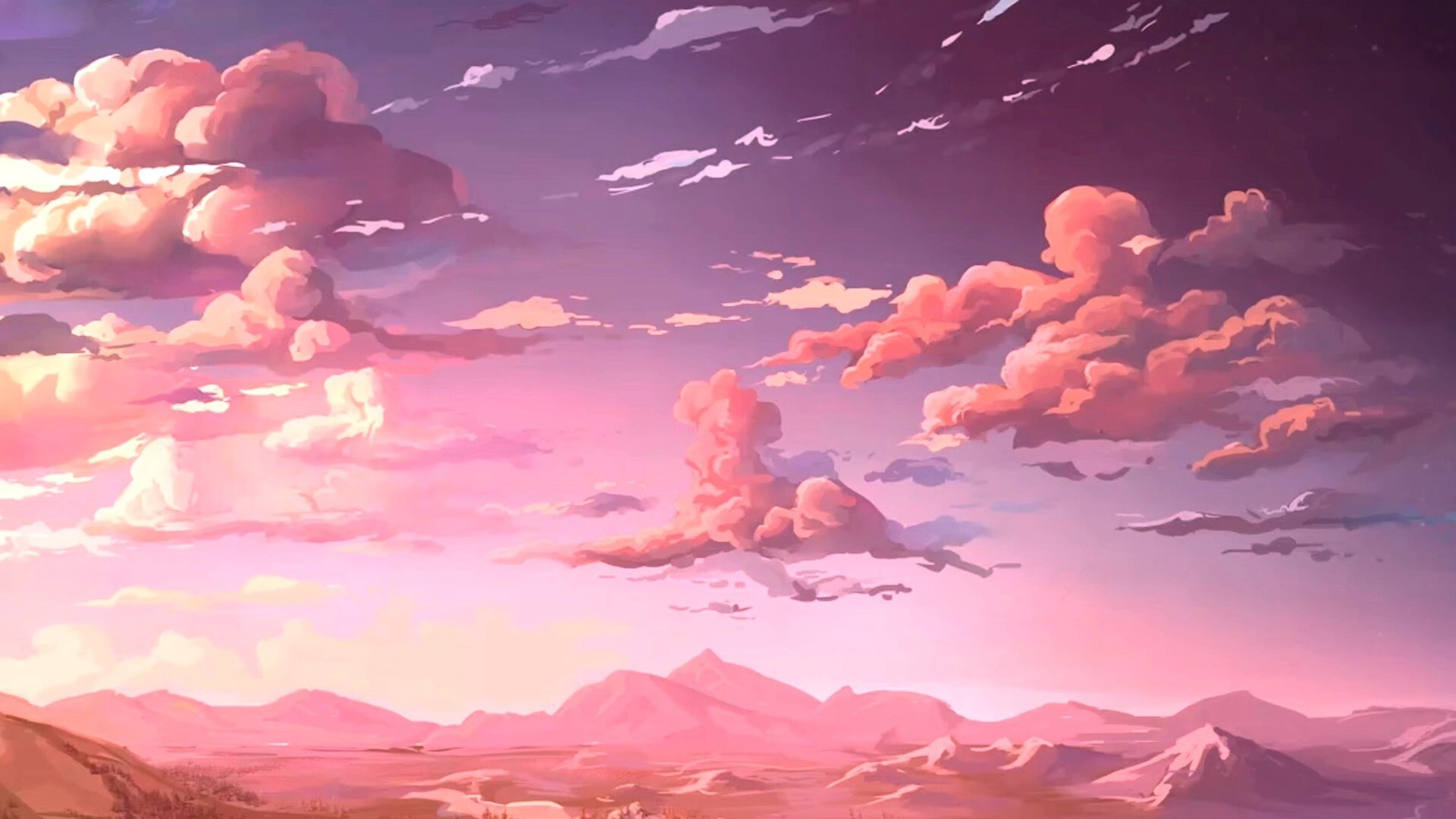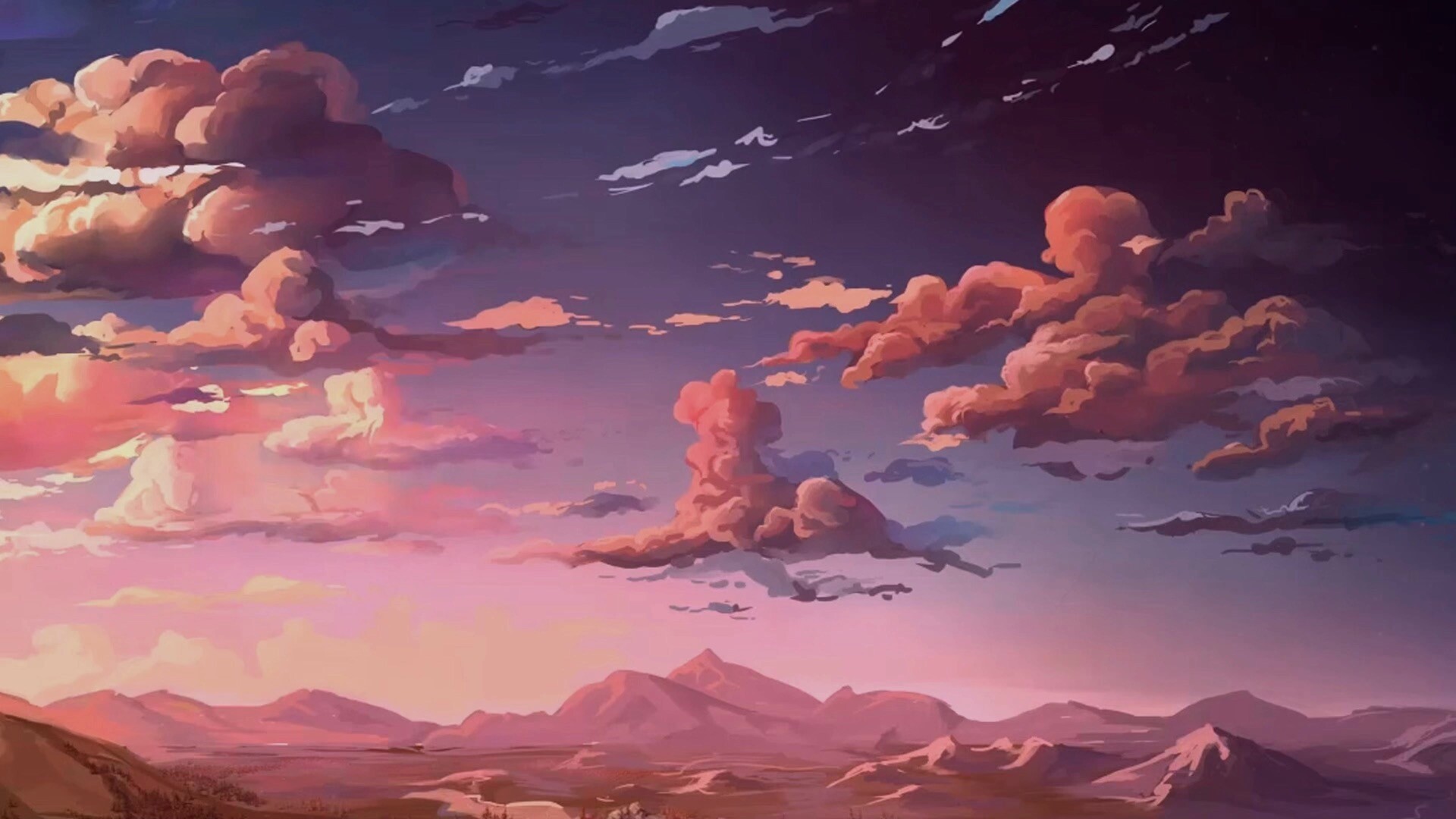 日落晚霞风景动态壁纸分享,此壁纸为动漫画风,一天的描绘了日落晚霞的美丽风景